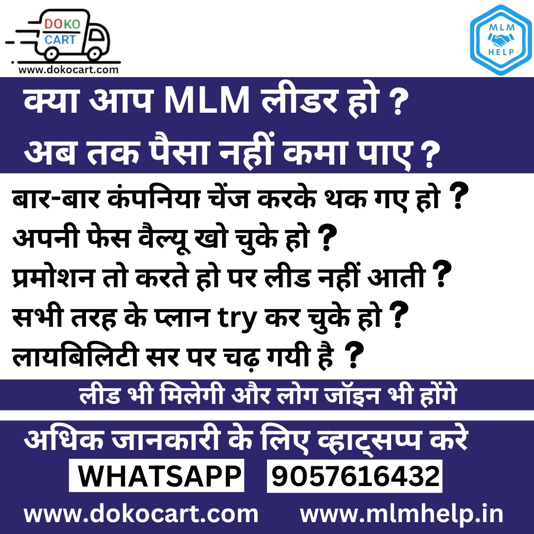 नमस्कार दोस्तों हम लाये हे network leaders के लिए शानदार offer Website with online store एक ऐसी website जिसमे अपनी सभी कम्पनी के referral/ affiliate link promote कर सकते हे साथ में अपने व कम्पनी के product online sell कर सकते है यह website आपको अपना खुद का नेटवर्क बढ़ाने में बहुत सहयोगी इसके माध्यम से आप सभी MLM network marketing company के बारे में जानकारी प्रदान कर सकते है विस्तार पूर्वक समझने के लिए हमसे सम्पर्क करे 9057616432